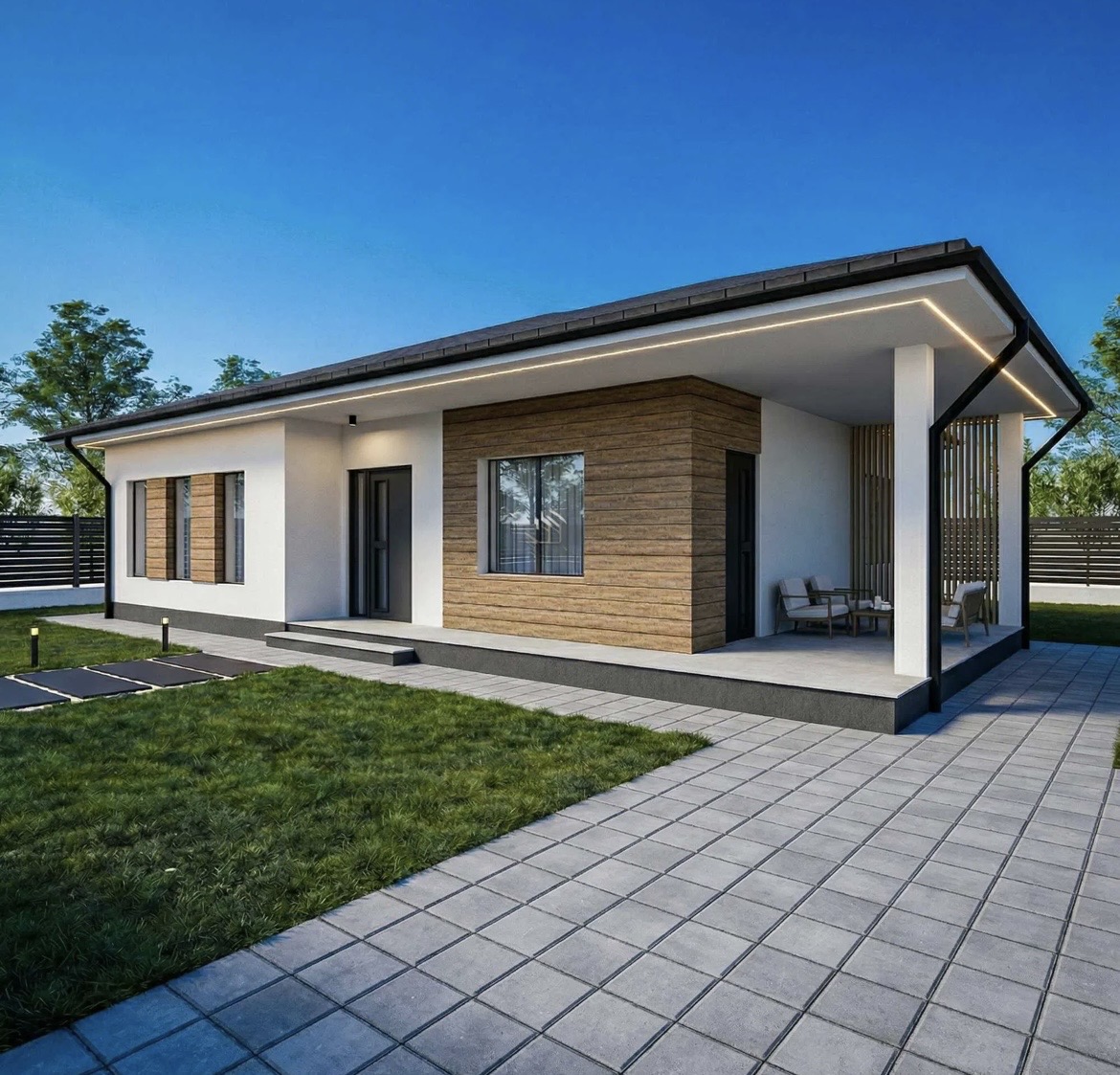Avem disponibile case cu trei camere și cu o suprafață utilă de 81 mp plus 20 de mp terasa acoperită la prețul de 145.000 de euro !